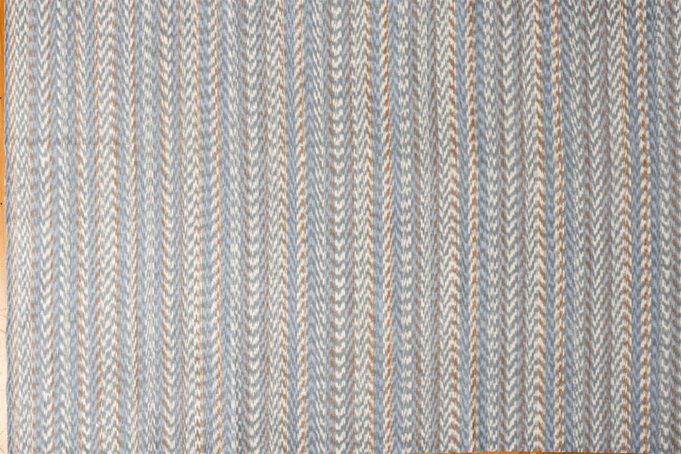 Jiva is an all-over handwoven ikat that reads like texture from afar, but reveals a rhythmic, living pattern up close. It’s a subtle expression of spirit, which is not always neat and linear. There’s a pulse in its repetition, a softness in its complexity. A simple stripe two tone stripe provides the base for the ikat design to be hand screen printed on the loose warp threads, before being hand woven.